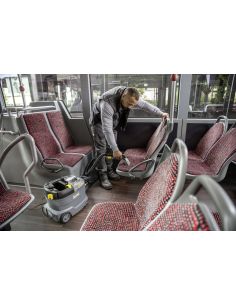 Mašina za dubinsko pranje impresivno čisti, uklanja fleke i mrlje sa tekstilnih površina uz izvanredne i higijenske rezultate čišćenja i visoku efikasnost. Kompaktna mašina za ekstrakciju raspršuje rastvor za čišćenje duboko u tekstilna vlakna, a zatim ga ponovo usisava zajedno sa nečistoćom. Ova odlična performansa povratnog usisavanja takođe obezbeđuje brzo sušenje i znači da se tekstilne površine mogu brzo ponovo koristit, idealno za visoke zahteve profesionalaca za čišćenje u hotelskom i ugostiteljskom sektoru ili za čišćenje unutrašnjosti vozila. Zahvaljujući veoma maloj težini i ergonomskoj dršci za nošenje, mašina se može lako transportovati jednom rukom. Veliki prekidači koji se mogu upravljati rukom ili nogom takođe povećavaju ergonomnost za korisnika. Robustan, izdržljiv i efikasan.
