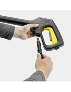 Za još efikasnije čišćenje, deterdžent se može nanositi direktno putem pištolja, ukoliko kompresorski čistač ima ulaz za deterdžent. Dečija sigurnosna blokada omogućava lako zaključavanje okidača, dok praktični Quick Connect adapter olakšava povezivanje creva za visok pritisak.