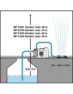 Kompaktna, robusna i dugotrajna baštenska pumpa BP 5.000 GARDEN, savršen model za zalivanje bašte vodom iz alternativnih izvora kao što su burad sa kišnicom ili bunara. Pumpa impresionira velikom snagom usisavanja i optimalnim performansama pritiska. Može se lako transportovati zahvaljujući ergonomskoj dršci i maloj težini. Baštenska pumpa takođe ne zahteva održavanje i može se povezati bez potrebe za alatom. Lako se uključuje i isključuje pomoću velikog nožnog prekidača, čime se štite leđa. Upotreba visokokvalitetnih materijala garantuje dug životni vek. Sa elektronskim presostatom, BP 5.000 GARDEN se može nadograditi na pumpu sa automatskom START - STOP funkcijom (ugradnjom elektronskog prekidača pritiska). To znači još veći komfor u pogledu zalivanja bašte.