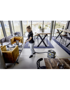 T 15/1 ADVANCED HEPA sastoji se od 45% recikliranog materijala (svi plastični delovi, osim opreme.), koji čuva resurse i energiju tokom procesa proizvodnje. Impresionira prvoklasnom snagom usisavanja, održivošću, robusnošću i izvanrednim odnosom cene i performansi. Uprkos visokoj snazi usisavanja, radi na samo 52 dB(A) i stoga je ultra tih, što mu omogućava da se bez poteškoća koristi za dnevno čišćenje iu područjima osetljivim na buku. Kompaktan nudi praktičnu, sklopivu ručku za nošenje za ergonomski transport. Otporan na naginjanje i mobilan. Zapremina rezervoara usisivača je 15 litara. Njegova izdržljivost i robusnost su očigledni u karakteristikama kao što su šasija, kućište, branik i veliki točkovi. Papuča za fuge koja se nalazi u obimu isporuke može se odložiti u integrisano skladište za pribor i stoga je uvek na dohvat ruke. Visoko efikasan HEPA 14 filter uključen je u obim isporuke.